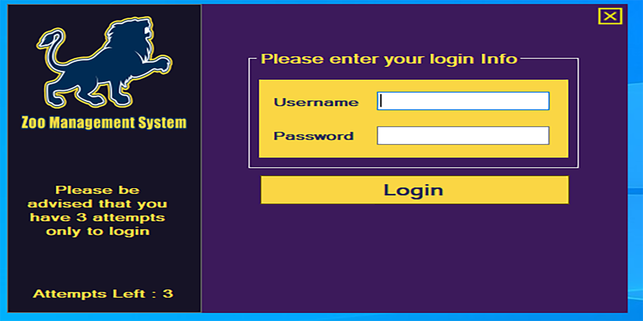 - Designed Login Form, Admin Form, and Zookeeper Form using windows forms.